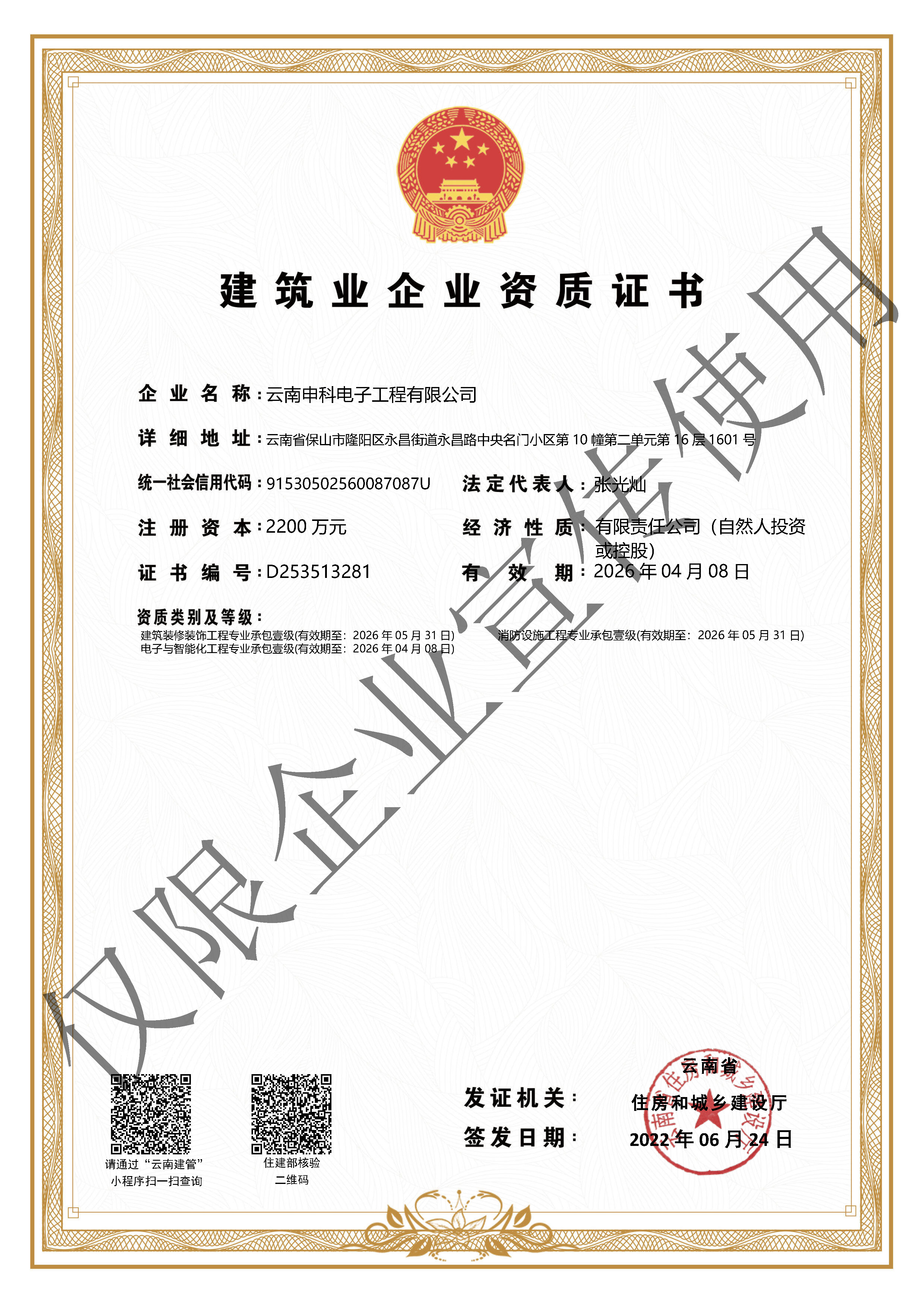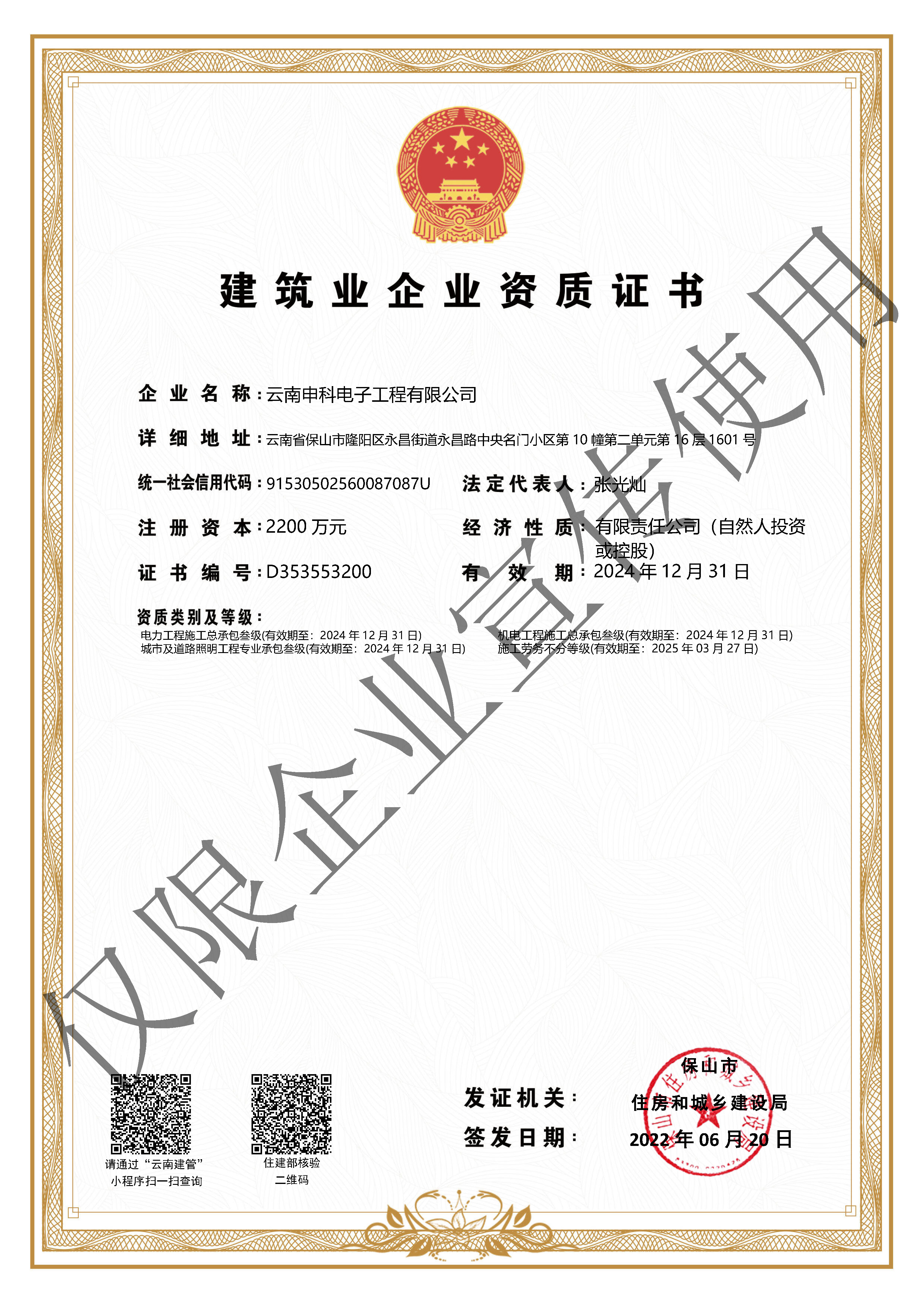電力工程、機電工程施工總承包、城市及道路照明工程專業承包、施工勞務資質