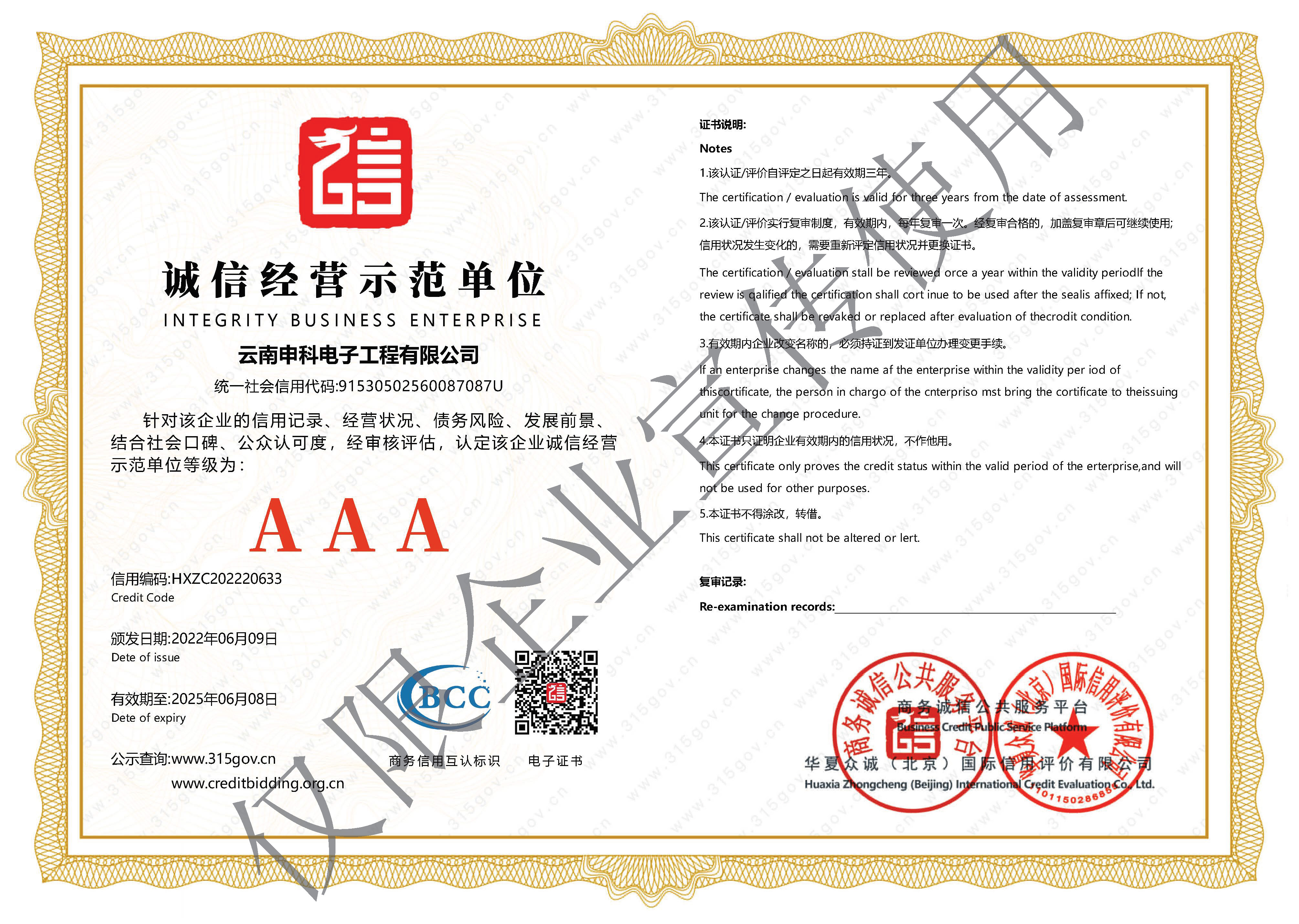 AAA級誠信經營示范單位